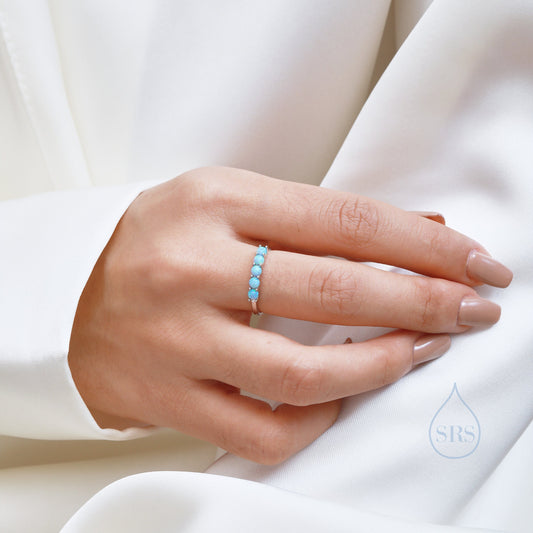 Opal Half Infinity Ring in Sterling Silver, Adjustable Size, Opal Ring, Five Opal Prong Set, Lab Opal Stone Ring, White Opal or Blue Opal