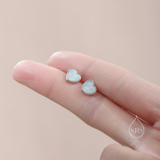 White Opal Heart Stud Earrings in Sterling Silver, Lab Opal Heart Earrings, Silver or Gold or rose gold, Delicate Fire Opal Heart Earrings