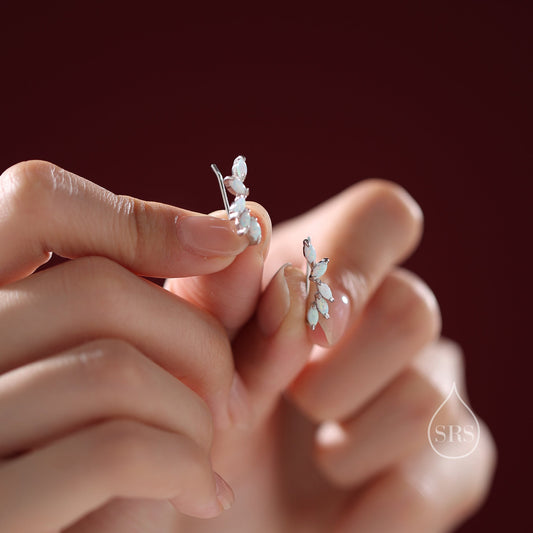 White Opal Marquise Cluster Crawler Earrings in Sterling Silver, Marquise Cluster Ear Climbers, Silver or Gold , Lab Opal Earrings