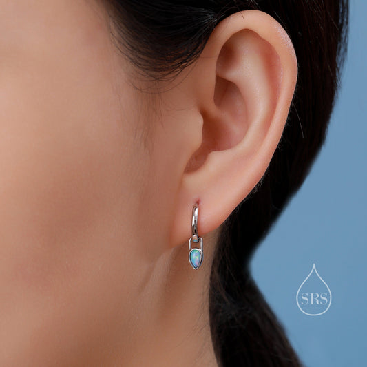 White Opal Dagger Huggie Hoop Earrings in Sterling Silver, Tiny Opal Bullet Hoops, Opal Hoops, Opal Droplet Hoops, Pear Shape Opal Hoops