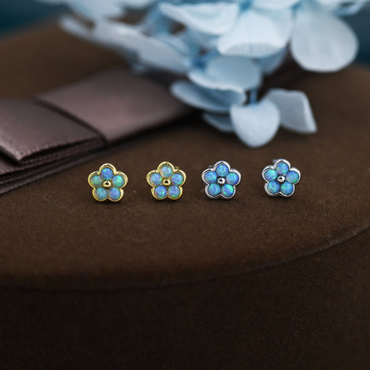 Blue Opal Flower Stud Earrings in Sterling Silver - Gold or Silver - Opal Forget-me-not - Opal Cluster - Petite Stud Earrings, Fire Opal
