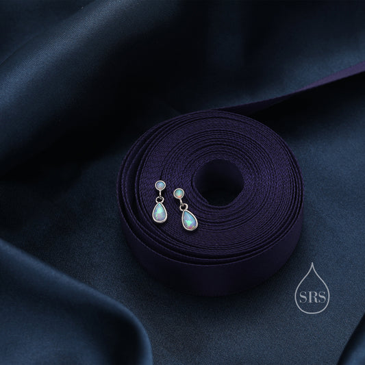 Tiny Opal Dangle Stud Earrings in Sterling Silver with Round and Droplet Opals, Silver or Gold, White Opal or Blue Opal