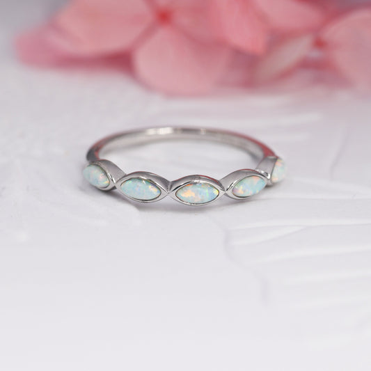 Fire Opal Marquise Ring in Sterling Silver, US 5 - 8, Opal Cluster Ring, Silver Opal Ring, Lab Opal Stone Ring, White Opal Ring