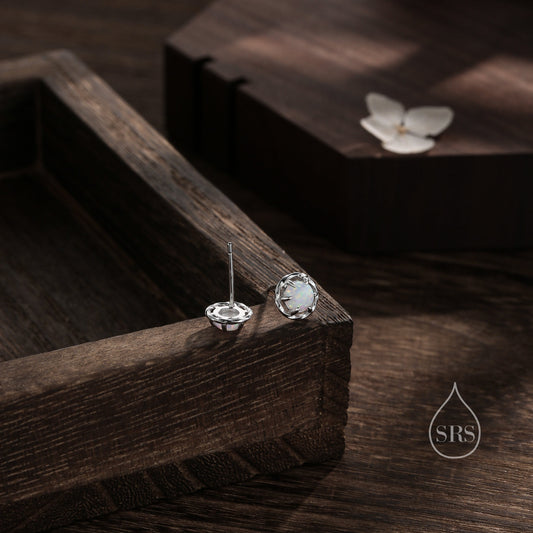 White Opal Thorn Claw Stud Earrings, Opal Twist Earrings, Fire Opal Halo Earrings, Opal Circle Stud