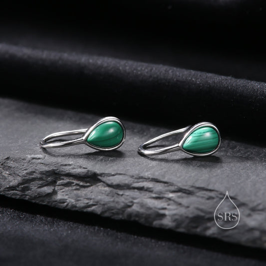 Genuine Malachite Pear Cut Drop Hook Earrings in Sterling Silver, Delicate Natural Green Malachite Earrings, Pear Droplet Malachite Earrings
