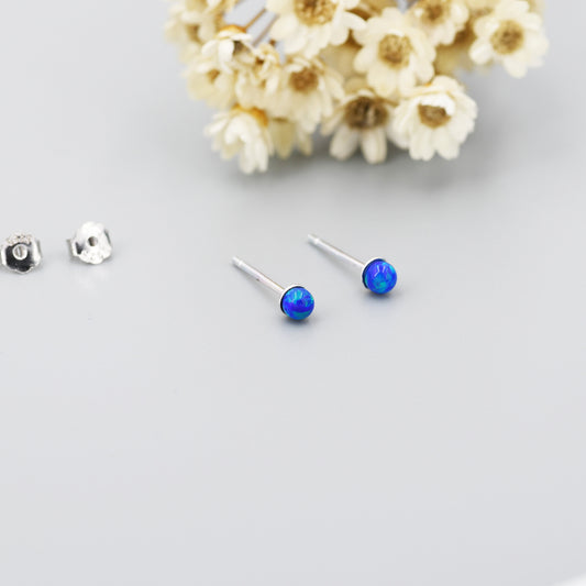 Dark Blue Opal Stud Earrings in Sterling Silver - Blue Opal Stud, 3mm Opal Ball Stud Earrings, Extra Tiny Opal Stud