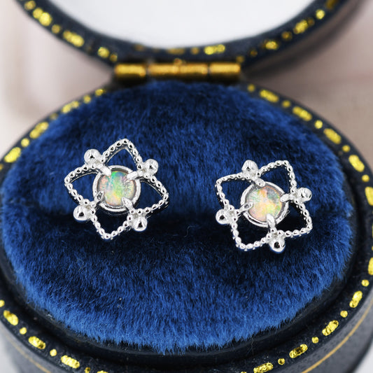 Vintage Inspired Opal Lace Stud Earrings in Sterling Silver, Silver or Gold or Rose Gold, Opal Earrings, Vintage Style