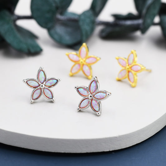 Stardust Opal Flower Stud Earrings in Sterling Silver - Gold or Silver - Opal Forget-me-not - Opal Cluster - Pink Opal Stud Earrings