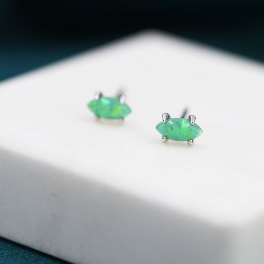 Tiny Mint Green Opal Marquise Stud Earrings in Sterling Silver, Tiny Marquise Opal Earrings, Mint Green Opal, Lab Opal Stud