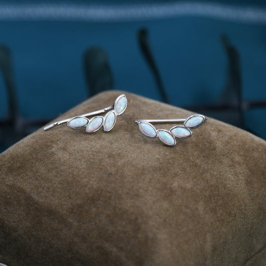 White Opal Marquise Crawler Earrings in Sterling Silver, Marquise Cluster Ear Climbers, Silver, Gold or Rose Gold, Lab Opal Earrings