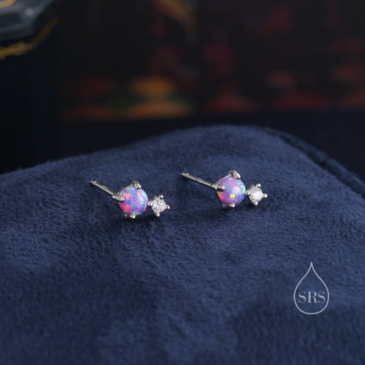 Sterling Silver Tiny Purple Opal and CZ Stud Earrings, Tiny Opal Earrings, Fire Opal, Lab Opal Stud