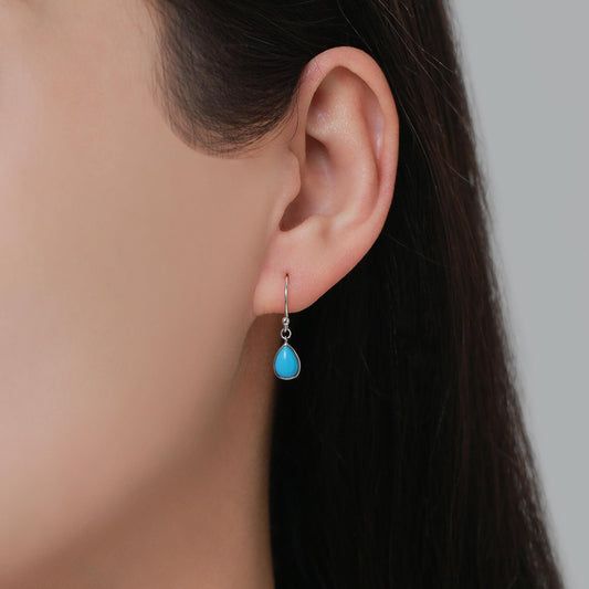 Pear Cut Blue Turquoise Stone Drop Hook Earrings in Sterling Silver, Natural Blue Turquoise Earrings, Pear Droplet Turquoise Earrings