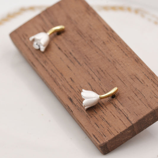 Lily of the Valley Flower Stud Earrings in Sterling Silver - Flower Blossom Stud Earrings - Cute, Fun, Whimsical