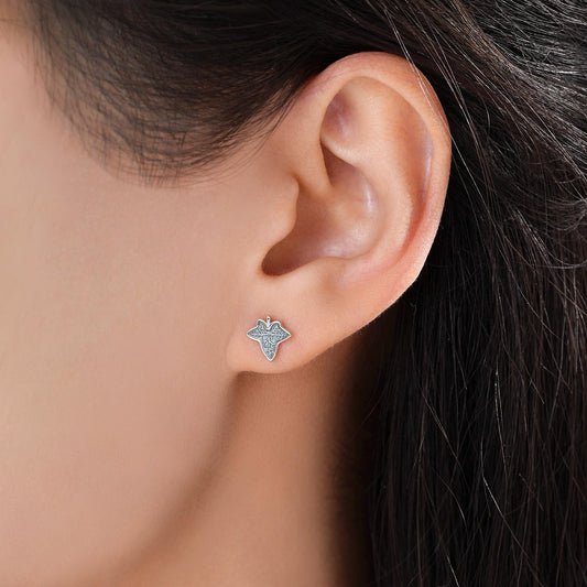 Enamel Ivy Leaf Stud Earrings in Sterling Silver, Nature Inspired Leaf Earrings
