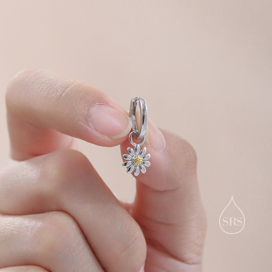 Daisy Flower Charmed Hoop Earrings in Sterling Silver - Cute Flower Blossom Huggie Hoop Earrings - Fun, Whimsical, Detachable Charm Hoops