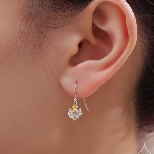 Thistle Flower Drop Hook Earrings in Sterling Silver - Scottish Flower Blossom Stud Earrings - Cute, Fun, Whimsical