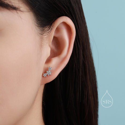 Tiny Flower Bouquet CZ Stud Earrings in Sterling Silver, Silver, Gold or Rose Gold, Three CZ Flower Earrings, CZ Cluster Earrings