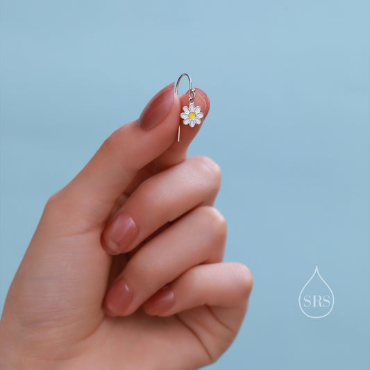 Sterling Silver Enamel Daisy Drop Hook Earrings, Dainty Dangle Daisy Earrings, Flower Earrings? Daisy Hook Earrings
