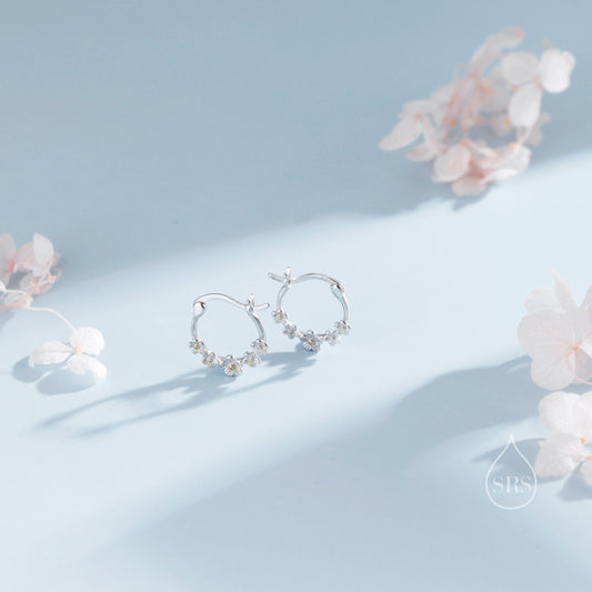 Forget Me Not Flower Cluster Hoop Earrings in Sterling Silver, Flower Bouquet Hoops