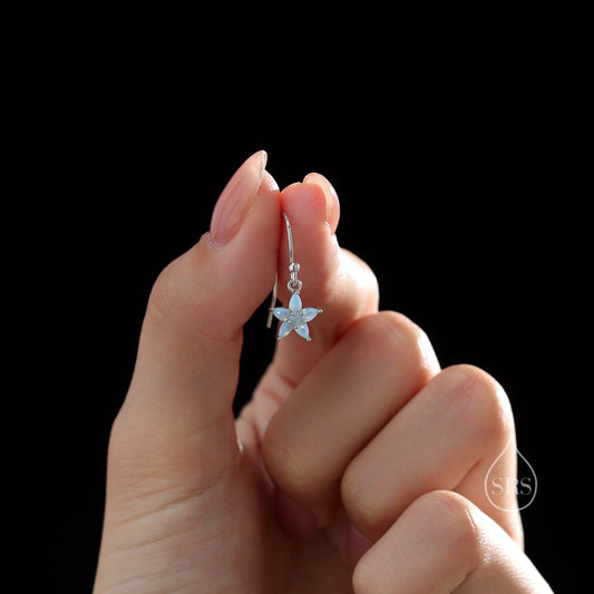 Sterling Silver Opal Blue CZ Flower Drop Dangle Earrings, Dainty Dangle Forget Me Not Flower Drop Earrings, Silver CZ Hook Earrings