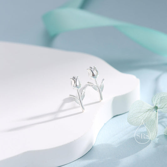 Dainty Tulip Flower Stud Earrings in Sterling Silver, Silver or Gold or Rose Gold, Flower Earrings, Tulip Earrings