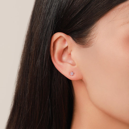 Pair of Very Tiny Ruby Pink CZ Flower Stud Earrings in Sterling Silver, Silver or Gold, Crystal Flower Earrings, Stacking Earrings, Ruby Red