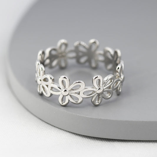 Forget-me-not Flower Infinity Ring in Sterling Silver, Flower Ring, Floral Ring, US 5-8