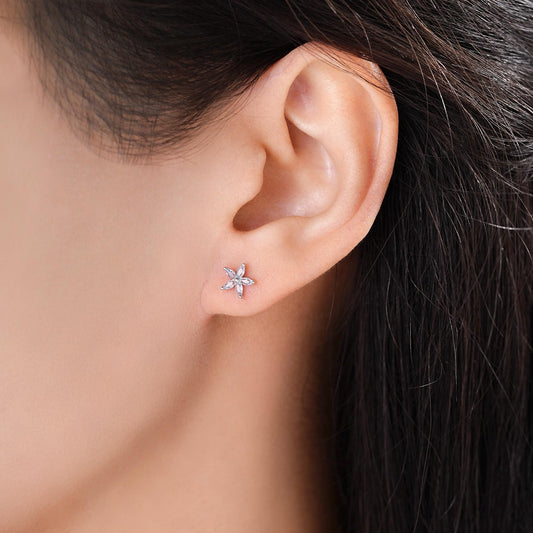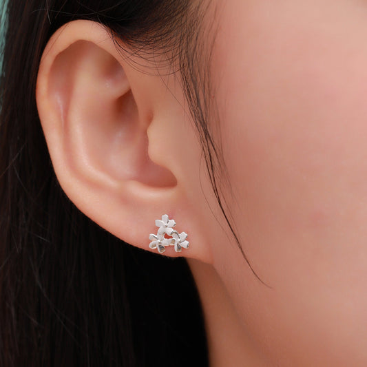 Jasmine Flower Stud Earrings in Sterling Silver - Cute Flower Blossom Earrings - Fun, Whimsical