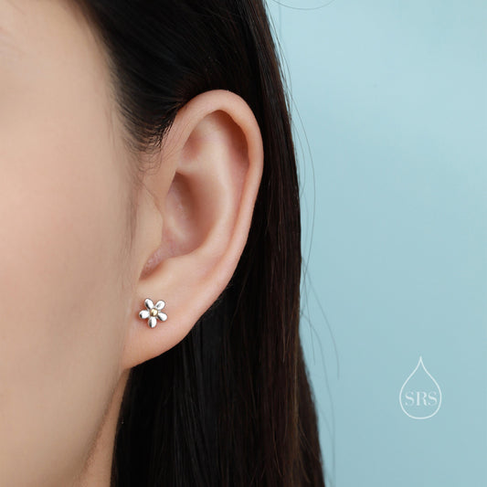 Tiny Little Forget-me-not Flower Stud Earrings in Sterling Silver, Cute Flower Stud, Tiny Flower Earrings, Floral Earrings