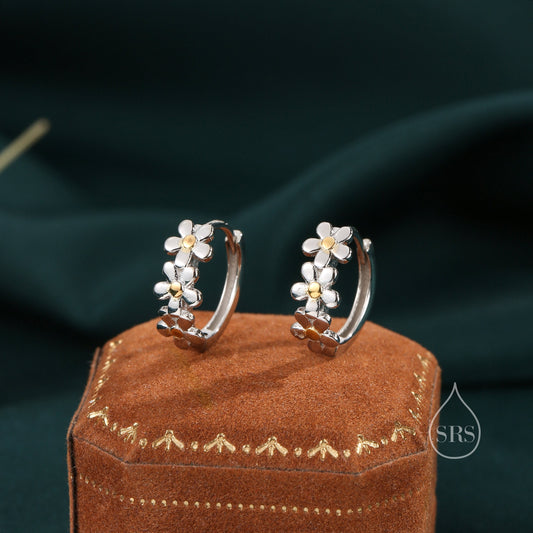 Daisy Chain Huggie Hoop in Sterling Silver, Partial Gold, Flower hoop Earrings, Forget Me Not Floral Earrings, 10mm Inner Diameter