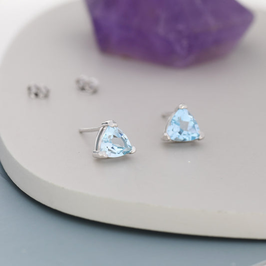 Genuine Swiss Blue Topaz Trillion Cut Stud Earrings in Sterling Silver, 6mm Trillion Cut, Large Topaz Stud Earrings, Natural and Untreated