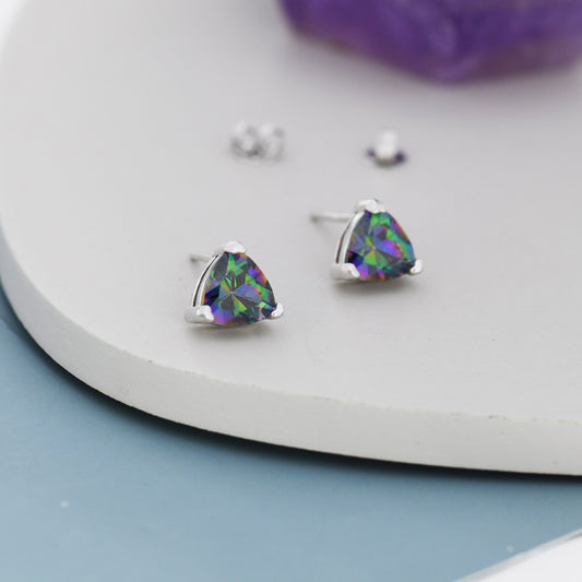 Mystic Topaz Trillion Cut Stud Earrings in Sterling Silver, 6mm Trillion Cut, Lab Mystic Topaz Earrings