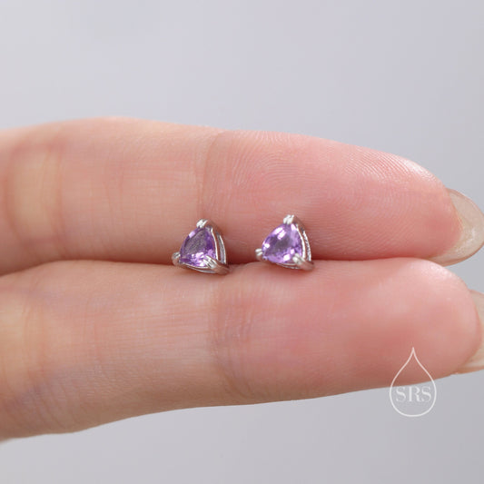 Genuine Amethyst Trillion Cut Stud Earrings in Sterling Silver, 4mm Trillion Cut, Tiny Amethyst Stud Earrings