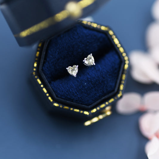 Genuine Lemon Quartz Crystal Heart Stud Earrings in Sterling Silver, Heart Stud Earrings, Tiny Heart Earrings