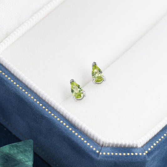 Genuine Peridot Pear Stud Earrings in Sterling Silver, 3x5 mm Droplet Stud Earrings, Tiny Peridot Earrings, August Birthstone