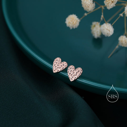 Hammered Heart Stud Earrings in Sterling Silver, Silver or Gold or Rose Gold, Heart Earrings, Fun and Quirky Jewellery