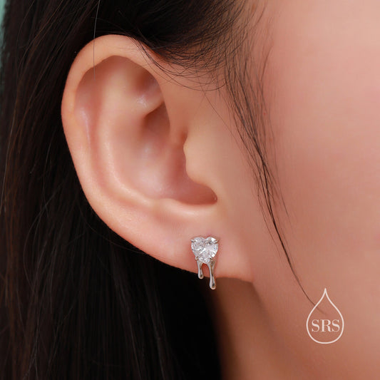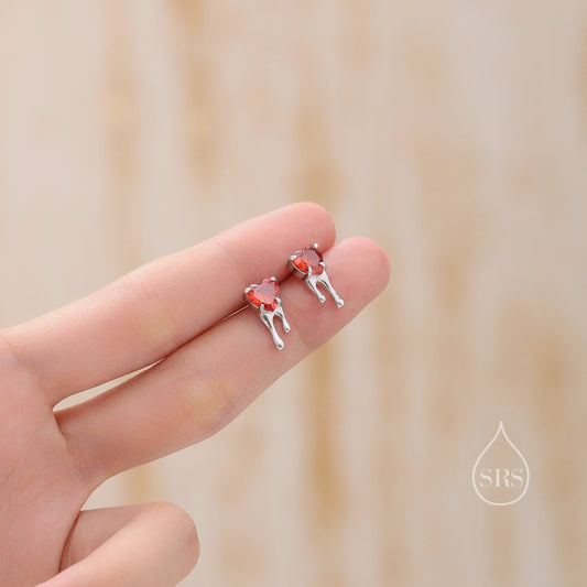 Bleeding Heart Stud Earrings in Sterling Silver with Pink or Red CZ, Silver or Gold, Beating Heart Earrings, Heart Earrings, Gothic and Punk