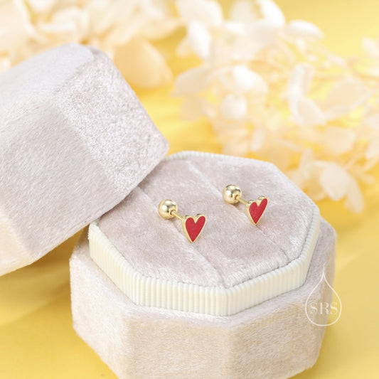 Red Enamel Heart Screwback Earrings in Sterling Silver, Silver or Gold, Delicate Heart Earrings, Heart Barbell Earrings, Screw Back