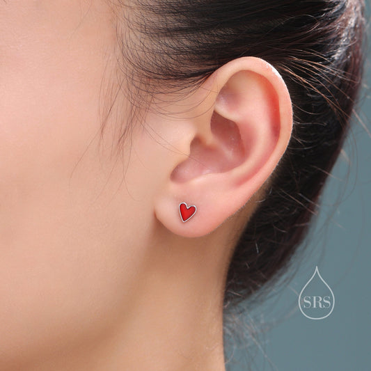 Enamel Heart Stud Earrings in Sterling Silver, Heart Earrings, Fun and Quirky Jewellery