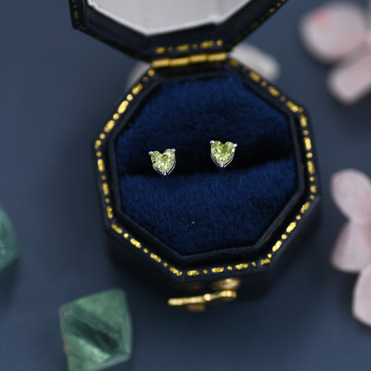 Genuine Peridot Heart Stud Earrings in Sterling Silver, 3mm Heart Stud Earrings, Tiny Heart Earrings