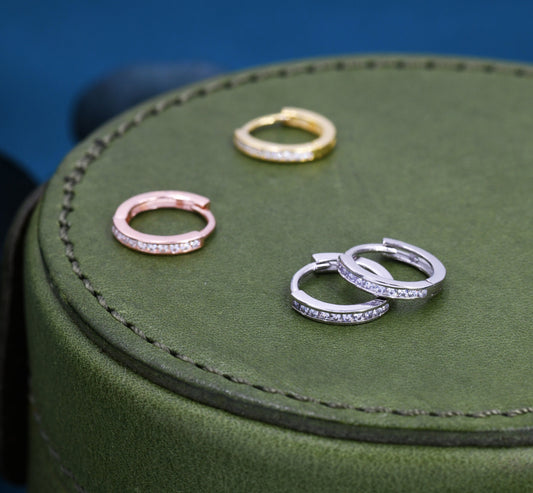 Skinny CZ Crystal Huggie Hoops in Sterling Silver, Silver or Gold or Rose Gold, Minimalist Hoop Earrings, 8mm and 10mm Hoops