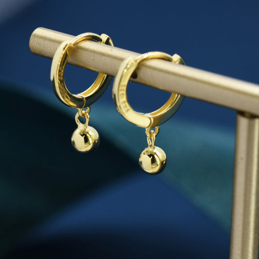 Dangle Ball Hoop Earrings in Sterling Silver, Dangle Hoop Earrings, Silver, Gold or Rose Gold? Silver Ball Huggie Hoops