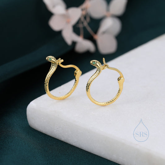 Cobra Snake Huggie Hoops in Sterling Silver, Gold, Rose Gold or Black, 8mm or 12mm, Snake Earrings, Snake Hoops