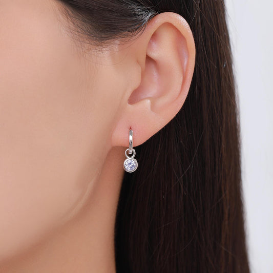 June Birthstone Alexandrite Crystal Drop Hoop Earrings in Sterling Silver, Detachable Dangle Earrings, Silver, Gold, Rose Gold