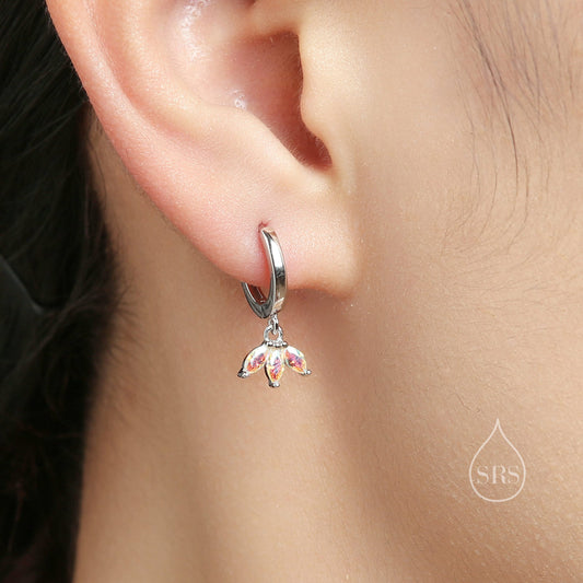 Aurora AB CZ Marquise Crown Huggie Hoop Earrings in Sterling Silver, Silver or Gold, Geometric Hoop Earrings, Colour Changing