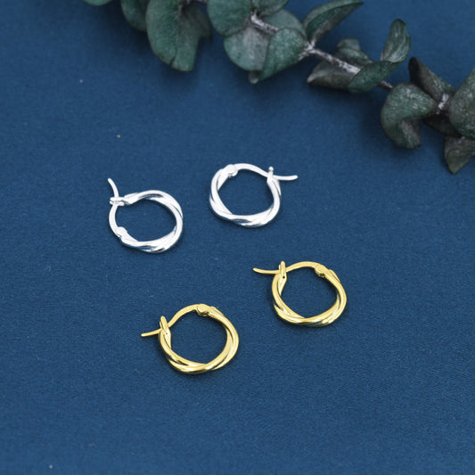 Entwined Hoop Earrings in Sterling Silver, Silver or Gold, Skinny Twist Geometric Hoop Earrings, Braided Rope Hoop Earrings, 15mm Hoops
