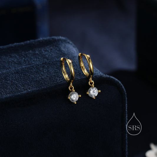 Tiny CZ Huggie Hoop in Sterling Silver, Silver or Gold or Rose Gold, Minimalist Simple Hoop Earrings, 4mm CZ Hoops