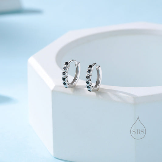 Black CZ Bezel Huggie Hoop in Sterling Silver, 8mm, Black CZ Hoops, Minimalist Simple Hoop Earrings, Black Hoops with Black CZ
