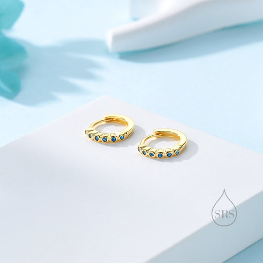 Sapphire Blue CZ Bezel Huggie Hoop in Sterling Silver, 8mm, Silver or Gold, Green Minimalist Simple Hoop Earrings, Green CZ Hoops