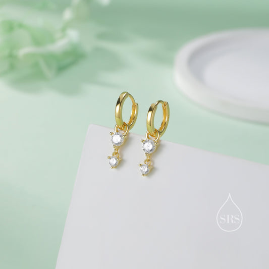 Double CZ Huggie Hoop Earrings in Sterling Silver, Silver or Gold, Detachable Charm Hoops, Geometric Hoop Earrings